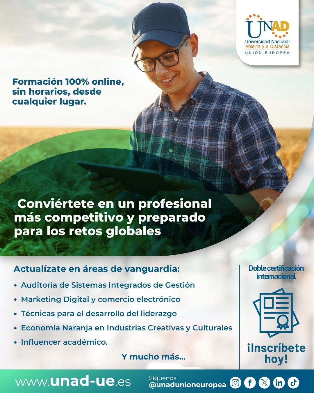 Las inscripciones ya están disponibles a través del sitio oficial www.unad-ue.es. Los interesados pueden acceder a asesoría personalizada y conocer el plan de estudios de cada programa antes de matricularse.